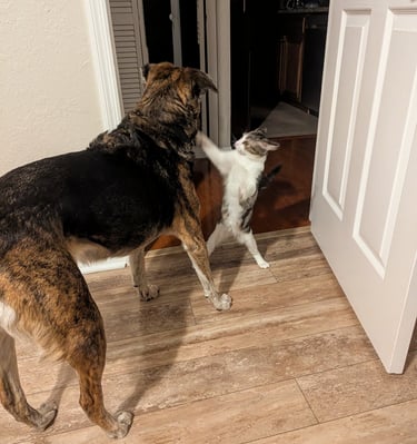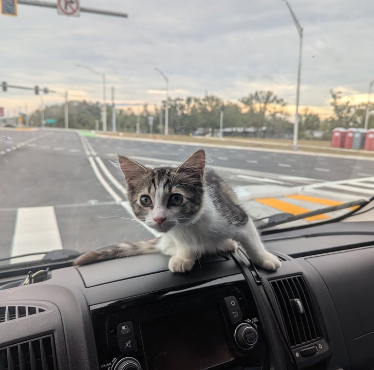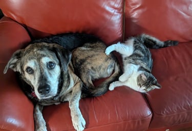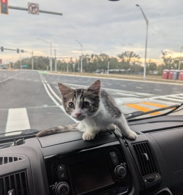 Your peace of mind while I’m away. Kira and Mala are safe, comfortable, and loved in our climate-controlled van.